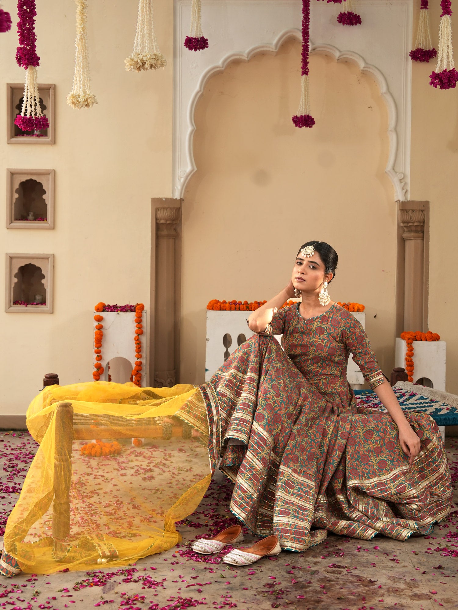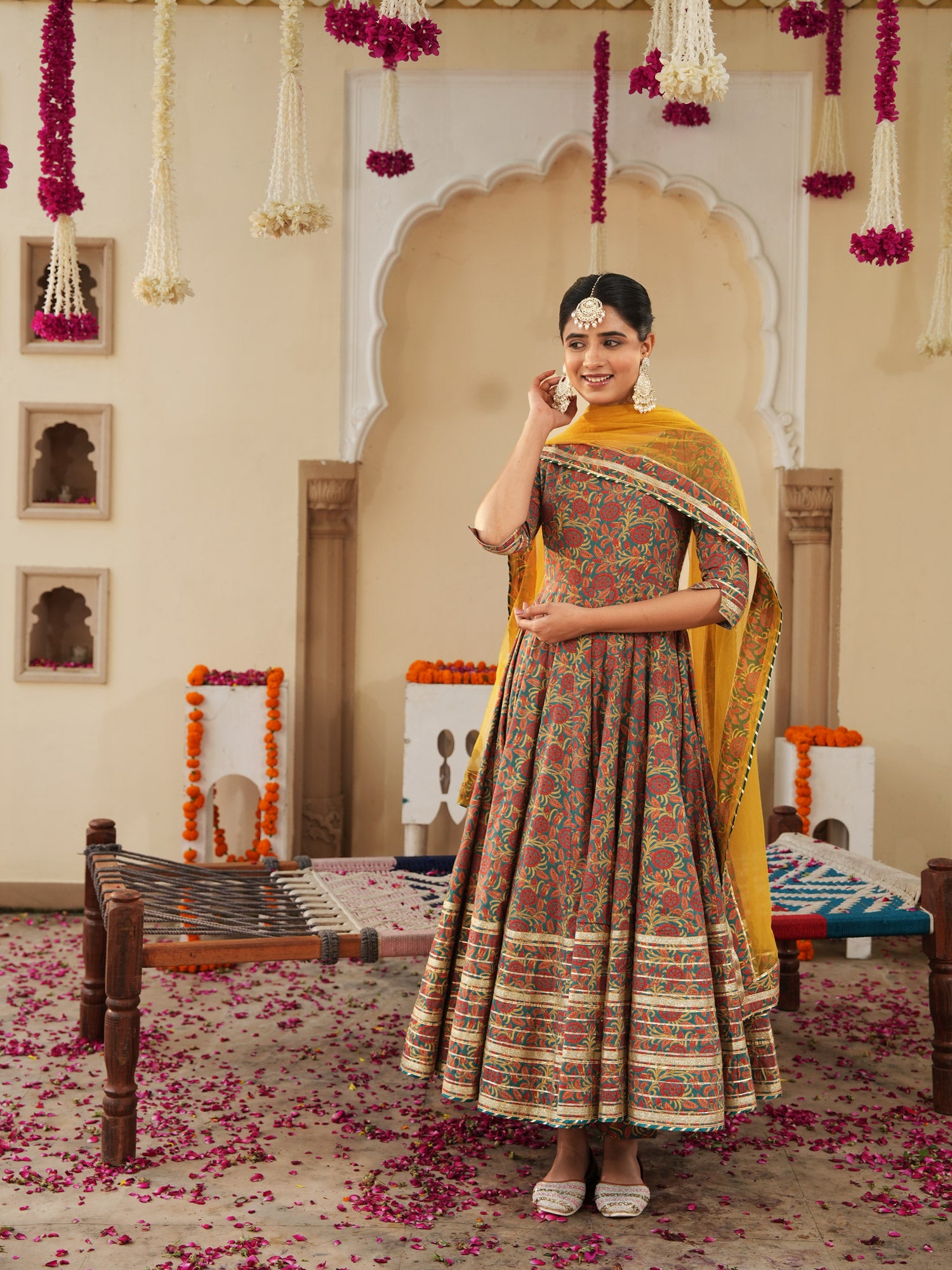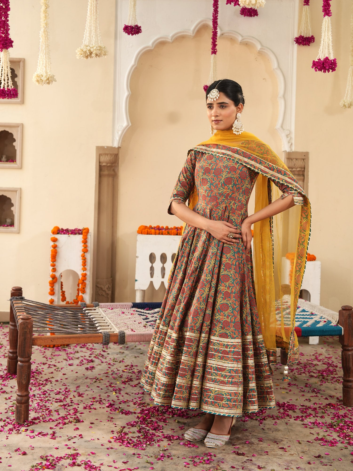 Lavish Ajrakh Flare Anarkali Suit Set